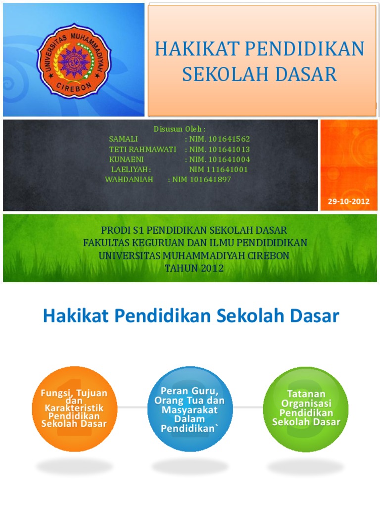 Hakikat Pendidikan Sekolah Dasar Sumber : www.scribd.com